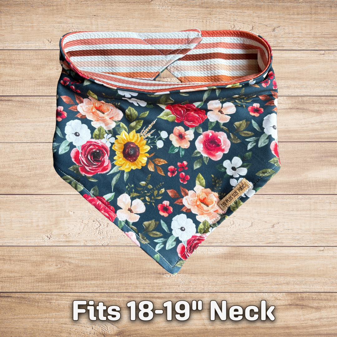 Measure your dogs neck where you would like the bandana to rest and order the coordinating neck size. Take into to account for thick coat or loose skinned breeds you may want to go up a size if they fall in between size options.