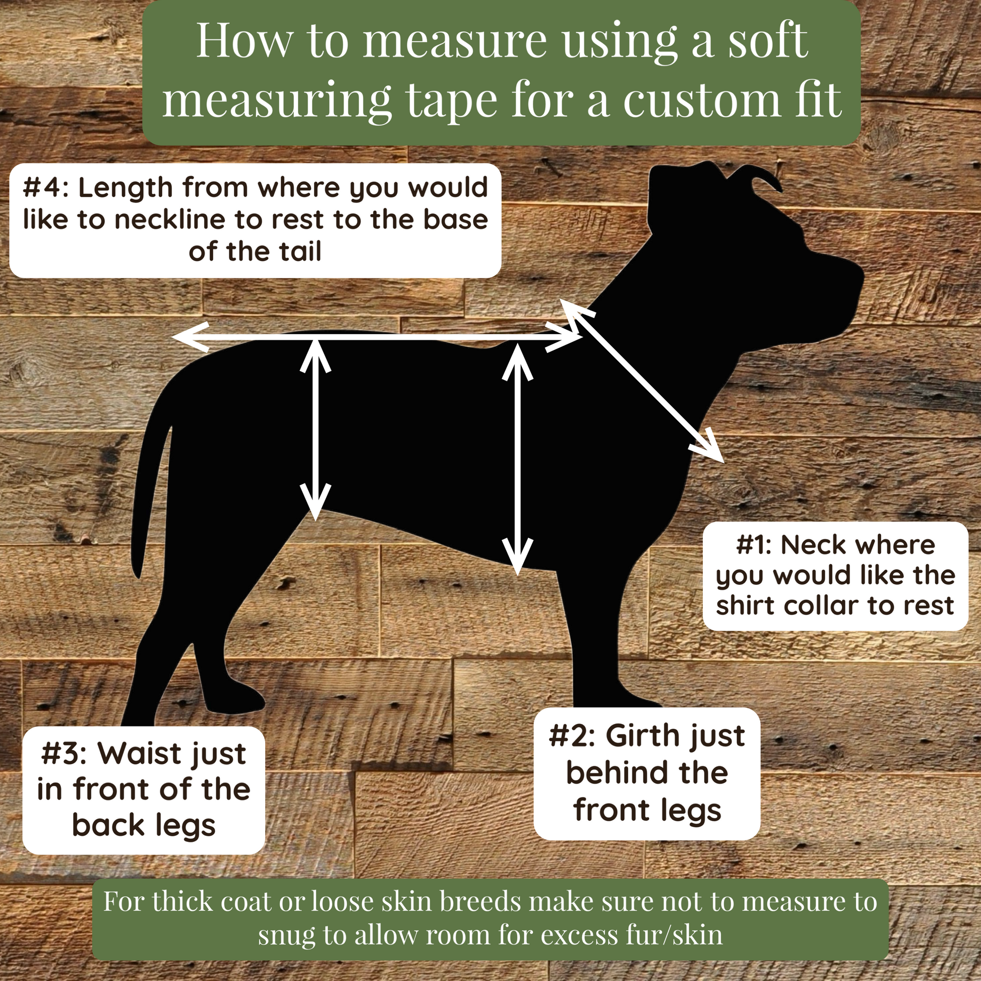 MADE TO ORDER: For custom size please be sure to add your dogs measurements in the text box. Please note any sizing issues you typically have such as broad chest, narrow chested, narrow waist, etc.