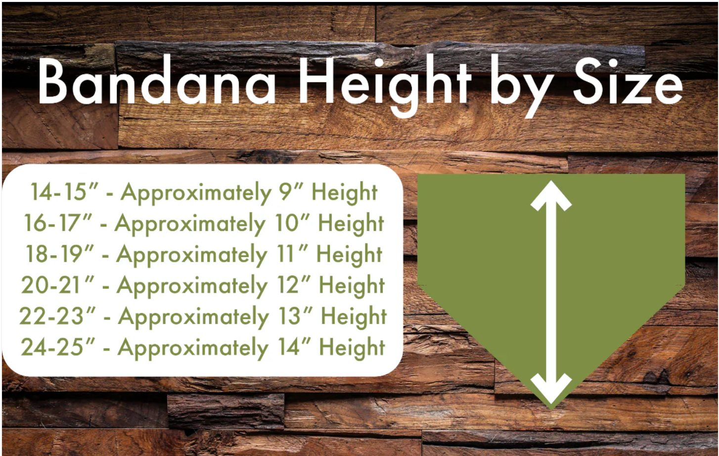 Measure your dogs neck where you would like the bandana to rest and order the coordinating neck size. Take into to account for thick coat or loose skinned breeds you may want to go up a size if they fall in between size options.